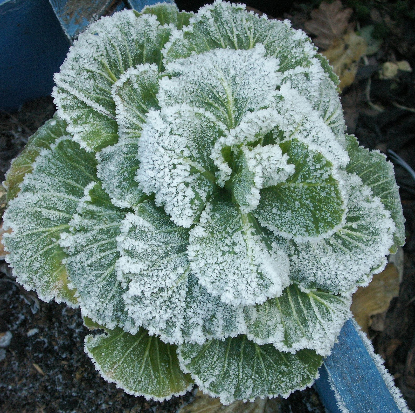 It's been really cold here in Yorkshire this week and I took some photographs of the frost on my garden plants. The top one is a cabbage. Don't they all look beautiful? It was especially nice to be able to see the frost through the windows of my lovely warm house!